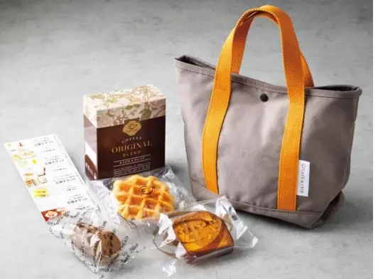 同商品は、フードメニュー交換チケット(4枚)、オリジナルバッグ、焼き菓子3種(ベルギーワッフルプレーン・チョコチップクッキー・国産かぼちゃとキャラメルのマーブルケーキ~キャラメルチョコ掛け~)、ドリップオリジナルブレンド1箱(5杯分)、ミニバッグのセットで販売価格は3,900円です。