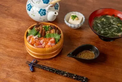 濱の四季では、「若狭おばま醤油干し【鯖】」と当店1番人気の「濱盛り丼」を一つの桶(丼)に入れ、伝統食とお魚の旨味を一緒にご堪能いただけます。