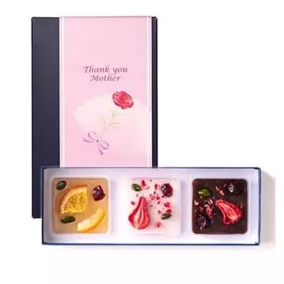 タブレットのように薄く作られた羊羹にドライフルーツやナッツをあわせた食感も楽しい芸術的な羊羹。なめらかで優しい甘みと果実のみずみずしい香りがひと箱に。