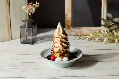 温かいスイートポテトの上に、冷たいソフトクリームの相性が抜群です。