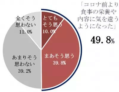 約5割が「コロナ前より、食事の栄養や内容に気を遣うようになった「フレイル」の予防・改善には食事や運動が有効ですが、コロナ禍の生活変化で健康意識が高まる中、栄養や内容を考えて食事を取るようになったという人も増えているようです。■3年前(コロナ前)より、食事の栄養や内容に気を遣うようになった(単一回答)全体(n=600)