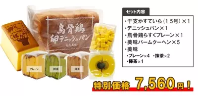 また、当社スタッフの中でも人気の「烏骨鶏卵デニッシュパン」や年末年始に大人気の「烏骨鶏かすていら1.5号(干支)」とのお得なセットもございます。