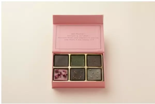ランチの前に食べることで食べ過ぎ防止効果が期待できる「Healthier you(コスタリカ80%)」や、スパイスの絶妙なバランスで気持ちの良い眠りへと導く「Sleep well(チョコレート・チャイ)」など、それぞれの時間に応じた6種類のチョコレートがセットになっています。