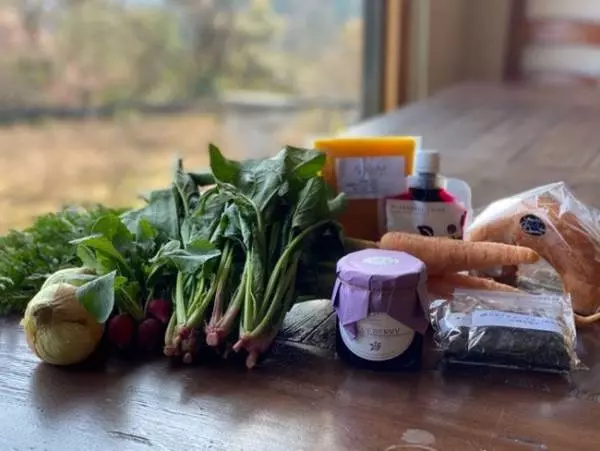 プロジェクトでは、同じ畑で育ったブルーベリー商品の他、野菜やハーブ、焼き菓子など。