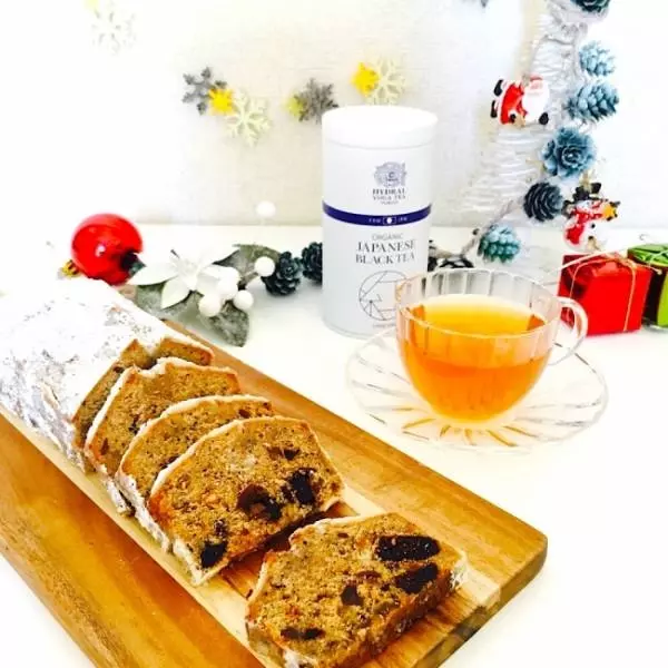 国産オーガニック茶葉と一緒にシュトーレンとセットなのが、希少な国産のオーガニック茶葉「ジャパニーズ・ブラック・ティー」。苦みが少なくやさしい甘さと芳醇な香りが特徴的で、シュトーレンとの相性も抜群です。