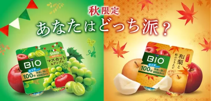秋の味覚が楽しめる季節限定品が登場「世界旅行」シリーズ第3弾は、“穏やかで落ち着いた日本の秋”がテーマの「和梨と紅ふじりんご」と、“実り豊かで華やかなイタリアの収穫の秋”がテーマの「マスカット&アップル」を発売します。