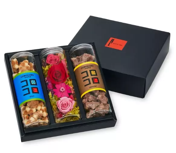 人気のプリザーブドフラワーを詰め合わせたセットもありますほんのり上品にバラの香りを感じる「いちご風味の粒入りストロベリークリーム」や、さっぱりとした口当たりの「レモンピール入りチーズクリーム」を、いちごのワッフル生地でサンドした「母の日ワッフルドルチェ」は、バラの花が咲いたように華やかでやさしい色合いのデコレーションワッフルです。