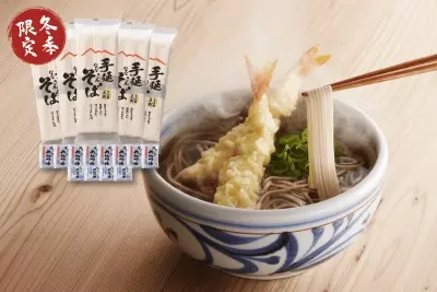 当社の麺は一般的な手打ちそばではなく手延(てのべ)そばのため、手延だからこそ生まれるコシやのどごしが特徴ですが、手延故にそば粉を多く配合すると途中で麺が切れてしまいます。