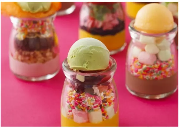 アイスやコットンキャンディにポップカラーのチョコレートやマシュマロを組み合わせて自分だけのパフェを作れる「ハロウィーンパフェステーション」、赤青黄緑の色がついたドリンクにカラーシロップを注入してアレンジできる「悪魔の実験コーナー」、ブラックパールタピオカが入れ放題のドリンクバーなども設けられます。