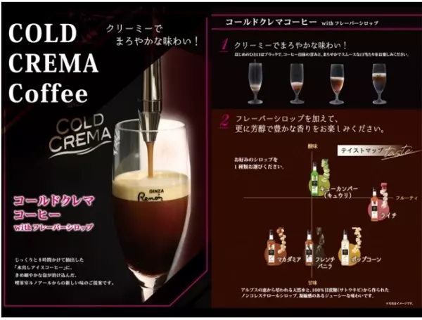 フレンチバニラ・マカダミアナッツなどのフレーバーシロップでオリジナルの味を楽しめます。