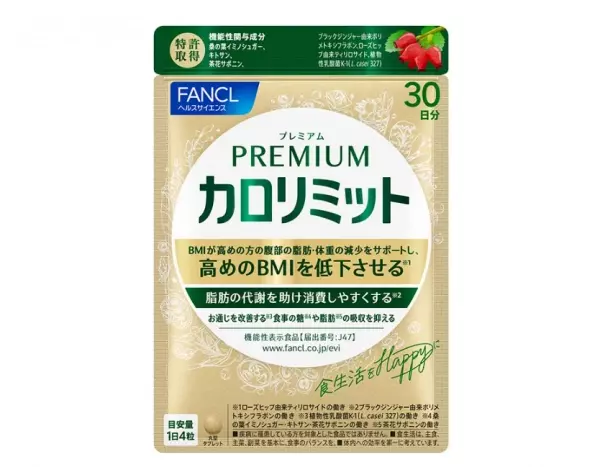 新成分追加で多様化するニーズに対応ブランド史上最高峰の「プレミアムカロリミット」は、“糖と脂肪の吸収を抑える”食事サポート機能はそのままに、新たに“高めのBMIを低下させる”機能性関与成分「ローズヒップ由来ティリロサイド」と“お通じを改善する”機能性関与成分「植物性乳酸菌K-1」をプラス。より幅広いニーズに応えられるサプリメントとなっています。