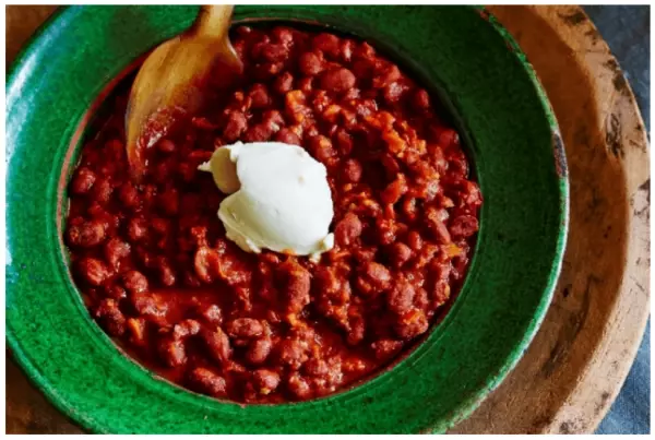 赤インゲン豆とトマトの「レッド・ビーン・チリ」に、甘みのあるぴりっとした味でスモーキーな独特の風味が特長のアヒ・モリド唐辛子を加えています。