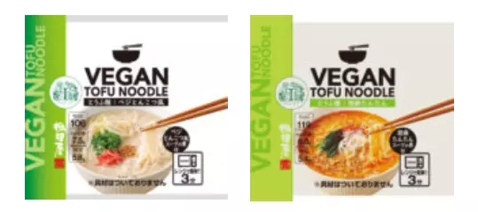 植物性100%とは思えないおいしさを実現『VEGAN TOFU NOODLE ベジとんこつ風』は、練胡麻やコメ味噌などを使って、コクと旨みのある「とんこつ風スープ」に仕上げました。香味野菜と2種類のにんにくも使われており、インパクトのある後味が楽しめます。1製品当たりのエネルギーは106kcal、たんぱく質は7.5g、糖質は5.8gとなっています。