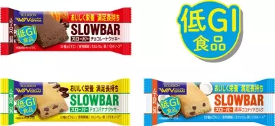 「スローバーチョコレートクッキー」「スローバーチョコバナナクッキー」「スローバー濃厚ココナッツミルク」の3品ともに、糖質の吸収がゆっくりである低GI食品です。今回新たに「低GI食品」のマークを記載し、商品特長がより伝わるデザインに仕上げました。