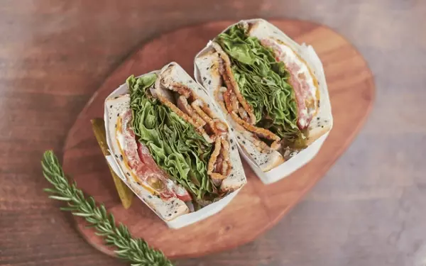 ソースと合わせる豚肉には、岩手県産のブランド豚「岩中豚」を使用。ジンジャーソースがジューシーな豚肉の旨みを最大限に引き出してくれます。サンドするセサミブレットの胡麻の風味もポイントです。