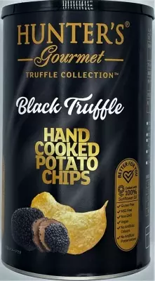 ドバイの高級ポテトチップス Hunter Foods「黒トリュフ風味150g缶」と 「白トリュフ&ポルチーニ風味150g缶」2品の取り扱いを開始