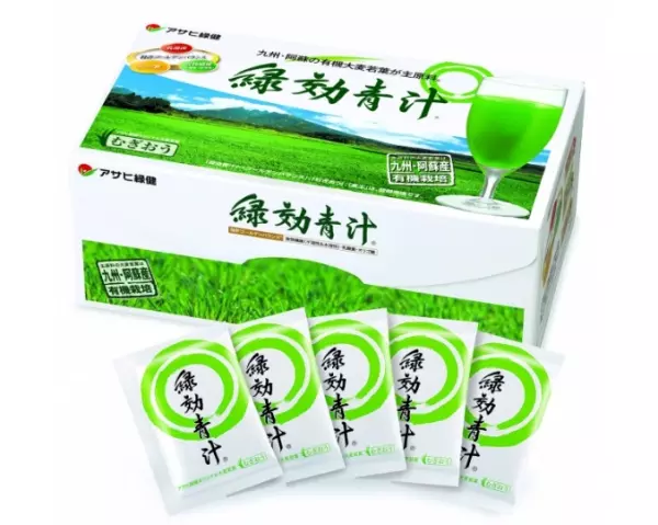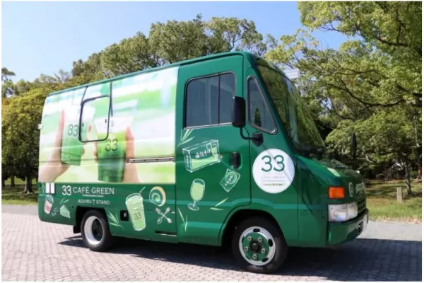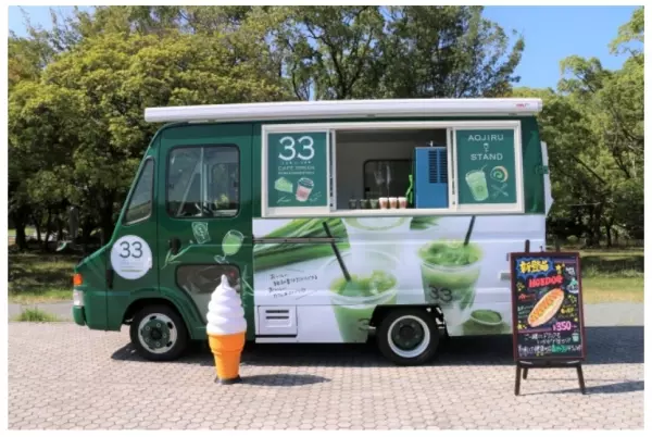 「青汁の日」にイベントデビュー「サンサンカフェ グリーン号」では、株式会社アサヒ緑健の主力商品「緑効青汁スタンダード」(300円)のほか青汁ラテ(480円)青汁ソフトクリーム(400円)などを販売。