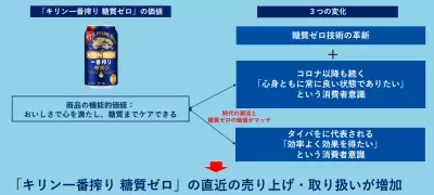 「キリン一番搾り 糖質ゼロ」は、おいしさと糖質ケアを同時に叶えるビール。同時に複数のメリットが得られるお酒という点も、人々のニーズにマッチし、売り上げ拡大に繋がったと考えられます。