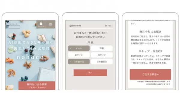 1分であなたに合ったおつまみを選定!「nohaco」の利用方法はとっても簡単です。