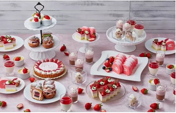 デザートコーナーは、苺を使った華やかなスイーツが大集合の「ストロベリーフェア」となっています。