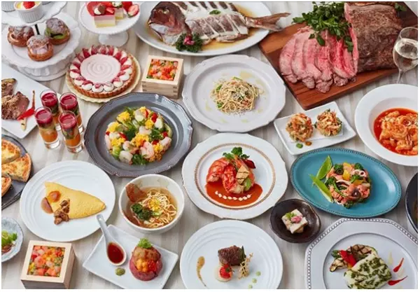 紅白ソースでいただく「白身魚のエルブ」や「海鮮ミニちらし寿司」などのお祝いをイメージした華やかな料理や、桜海老に筍、アスパラガス、菜の花などを使用した春らしい料理が多数登場。