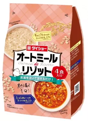 当社は昨年、お米の代わりにオートミールを用い、熱湯を注ぐだけで簡単に作れる『オートミールdeリゾットトマトコンソメ&チーズポタージュ』を発売しました。そして本年は、オートミール初心者の20~40代をメーンターゲットに、新フレーバーをラインアップします。