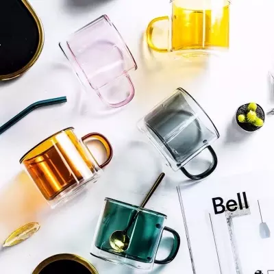 6色展開の、透明ガラス製のマグカップです。耐熱ガラスで、コーヒーや紅茶、スープなどにも使用可能。