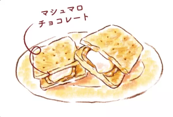 ビスケットにはさめばキャンプの「お手軽さくさくスモア」として楽しむことが可能です。