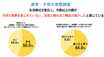 こういった結果から、ステイホームなどの影響が子供の食事に対しての心理的負担や様々な体験機会の妨げになってしまっていると考えられます。