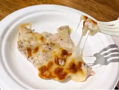 皮を取り、そぎ切りにした鶏むね肉を耐熱トレーに並べて塩コショウとオリーブオイルを少量ふったあと、モッツァリーノブレンドをたっぷりかけてオーブントースターで10分程度焼くだけ!手軽に作れる簡単レシピです。