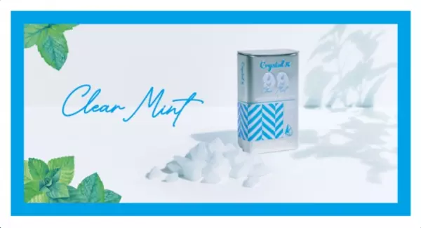 新しいひと粒習慣を提案振ってみるとカランカランと鳴る、どこかなつかしい缶の容器に入った「Crystal x 99」は「REFRESH LEMON」「CLEAR MINT」の2種類。