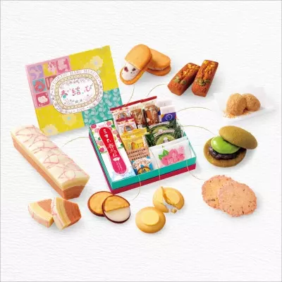 華やぎあふれる春ギフト、毎年変わるお菓子とふろしき「春結び」は贈る方も贈られる方も心ときめく、華やぎあふれる春ギフト、毎年変わるお菓子とふろしきが人気のヒミツです。
