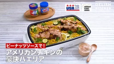 「DELISH KITCHEN」×アメリカ家禽鶏卵輸出協会 ×アメリカンピーナッツ協会 「アメリカ産ピーナッツバター」と 「アメリカ産丸鶏(ゲームヘン)」で、 夏の“おうちパーティー”にぴったり! 『アメリカンチキンの豪快パエリア』レシピを公開