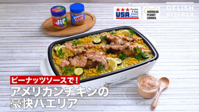 「DELISH KITCHEN」×アメリカ家禽鶏卵輸出協会 ×アメリカンピーナッツ協会 「アメリカ産ピーナッツバター」と 「アメリカ産丸鶏(ゲームヘン)」で、 夏の“おうちパーティー”にぴったり! 『アメリカンチキンの豪快パエリア』レシピを公開