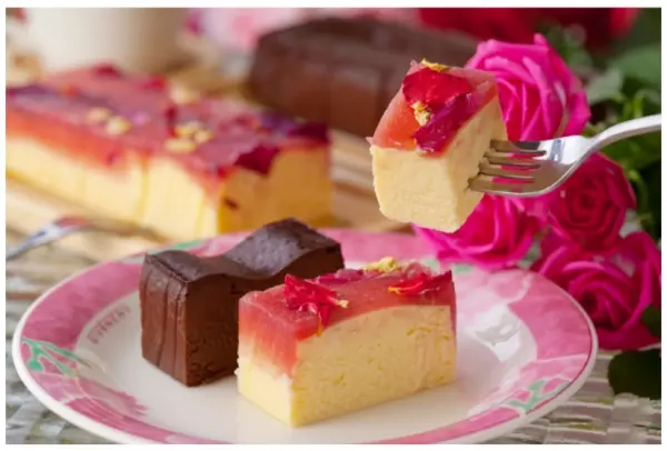 このほか「バラのチーズケーキ」(3000円)や、赤・黄・白の3色から選べる「カップにバラ咲く生薔薇茶」(1296円)も販売されます。
