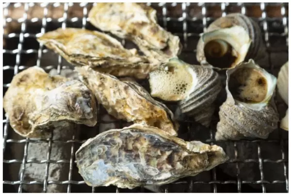 充実のトッピングで海鮮メニューを楽しもう今回オープンした「博多南ナチュラルオイスターガーデン」では糸島産牡蠣のほかサザエやホタテ、ハマグリ、エビ、あさりなどの豊富な海鮮メニューを提供。