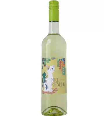 ミケリースリングはやや辛口のフルーティーなドイツワインで、ラベルのデザインには三毛猫のミケが描かれています。