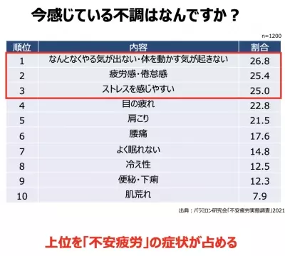 これはコロナ禍で生じる、「何となくだるい」といった身体的疲労感と 「やる気が出ない」「不安だ」という精神的疲労感が結びついたものです。