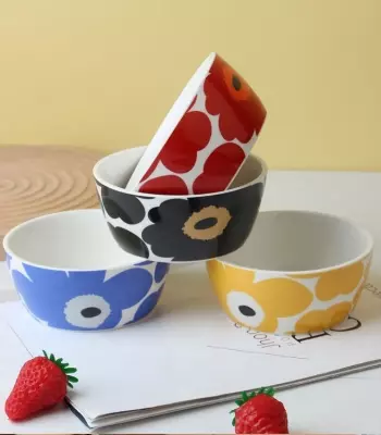 北欧風のカラフルなデザインのセラミックボウルです。ご飯茶碗としても最適なサイズ感。食卓がカラフルに変身します。