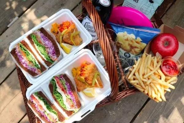 公園カフェでのんびりピクニックこだわりのオーガニック野菜や、地域に密着した地場食材で作った料理が人気のカフェ「44APARTMENT」。薬師池店限定で登場したのが、薬師池公園の自然の中でバーベキューやピクニックが楽しめるプランです。