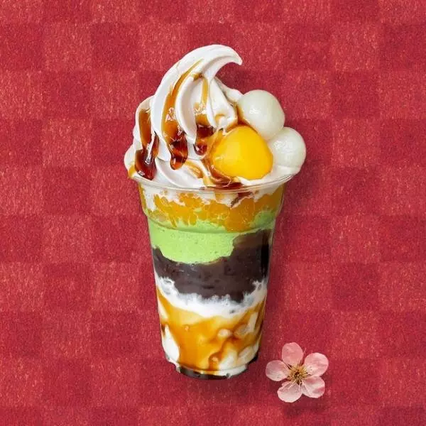 カカオ×和食材の絶妙な組み合わせ「新春ぜんざいサンデー」は、カカオが香るミルクアイスをベースに、有機栽培のあずきで作られたあんこ、宇治抹茶クリーム、栗の甘露煮、白玉をトッピング。さらに沖縄県産の黒糖を使った香り高い黒蜜を添えています。