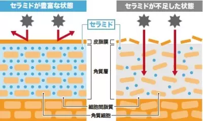 同成分はセラミド合成や肌の保湿に関わる遺伝子群の発現量を上げ、タイトジャンクション(※)の機能を上げることにより、肌の保湿力(バリア機能)を高めるものと考えられています。
