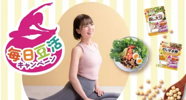 キャンペーンサイトでは、『蒸しサラダ豆』を使ったレシピ「キムチと蒸し豆のサラダボウル」や、腕・肩周りにアプローチするオリジナルフィットネスなどを公開しています。