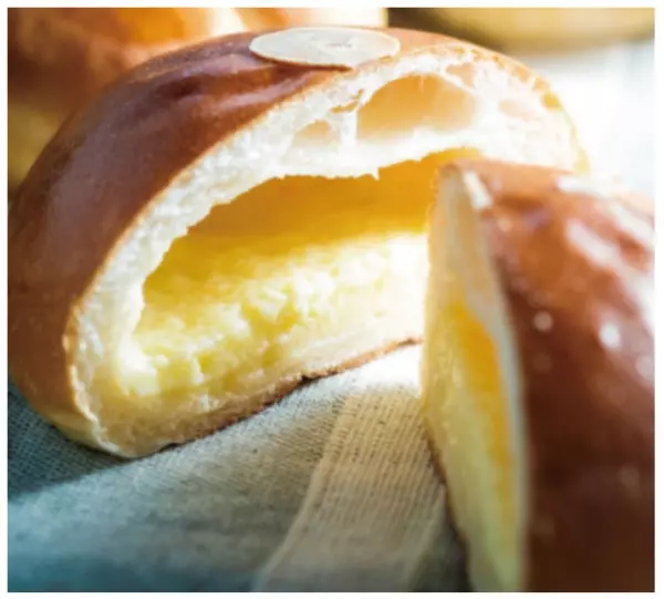 「しんゆりパンまつり」で好評を博した「平飼いたまごのクリームパン」(220円)は、山梨県の平飼い農場で育ったニワトリのたまごを使用しています。※価格は税込み。