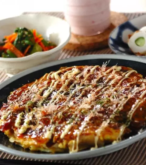 みんな大好きお好み焼き! 牛すじやエビなど、お好きな具を色々加えて美味!