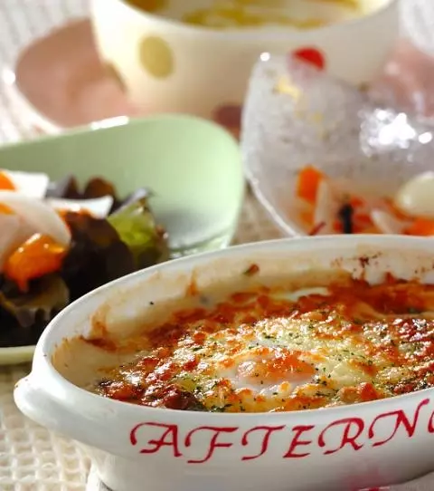 グラタンに卵を落とし入れるのが斬新!? ピクルスは多めに作って保存食としてもOK。