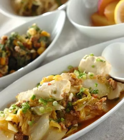 麻婆豆腐にシャキシャキの白菜を入れて。お浸しもレンジで作る、お手軽レシピ。