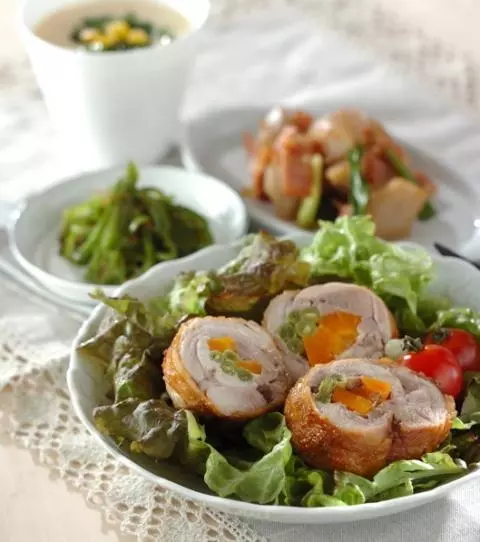 今日の献立は「チキンのロール煮」を含めた全4品。