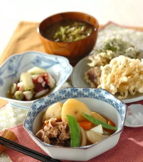 今日の献立は「豚肉で肉ジャガ」を含めた全4品。