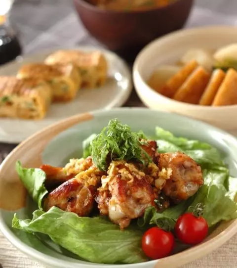 今日の献立は「手羽元の唐揚げ」を含めた全4品。